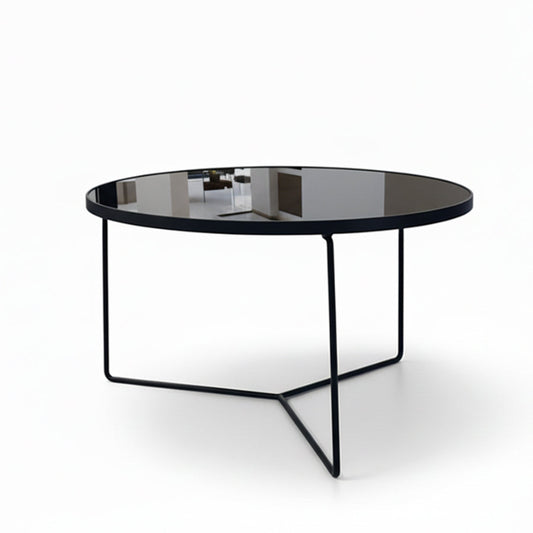 SYLAS Round Glass Coffee Table – Grey Tempered Glass & S-Shaped Stainless Steel Base