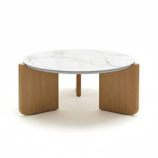 SANKOK Sintered Stone Round Coffee & Side Table | Modern Pedestal Base