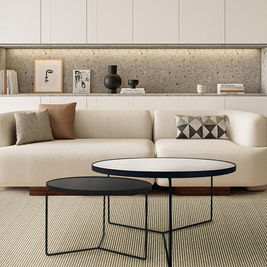 KRON Sintered Stone Coffee Table with Metal Legs - Round Black/White Marble (60cm/80cm)