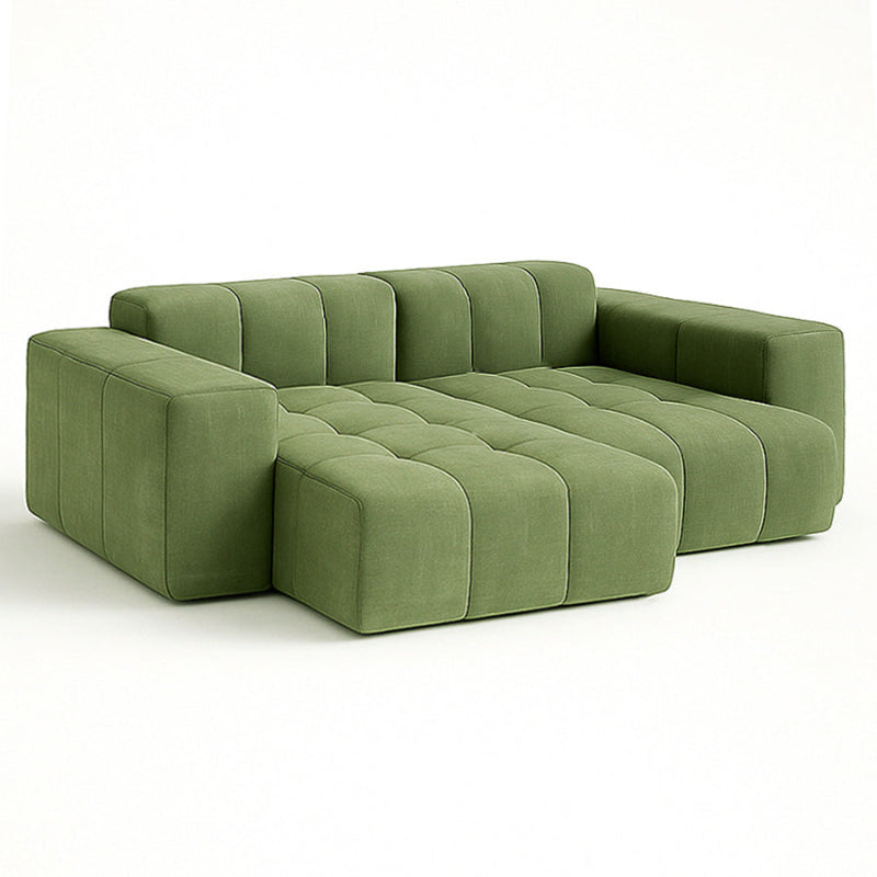 Upholstered in a soft, durable fabric, the BUCKLOE sofa creates a refreshing and cozy atmosphere, blending seamlessly with contemporary, minimalist, or Scandinavian interiors. Combining comfort with elegant detailing, this sectional is an ideal centerpiece for modern living.